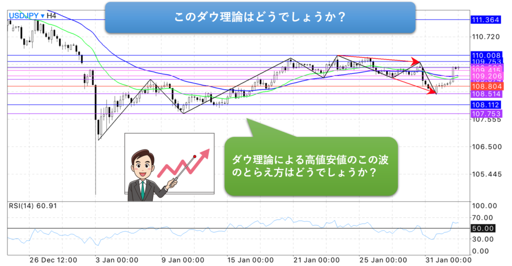 ダウ理論の波のとらえ方は、裁量的な余地がどうしても入りますので、人によって波のとらえ方がバラバラになるケースがあります。