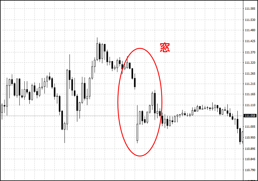 窓は、土日に何か経済的なニュース・イベントが発生し、月曜の朝一に大きく上昇して始まったり、逆に大きく下落して始まったりすることが原因です。