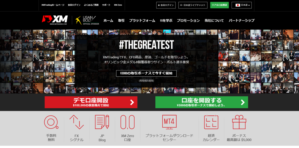 1. XMのホームページにいき、「デモ口座開設」をクリック