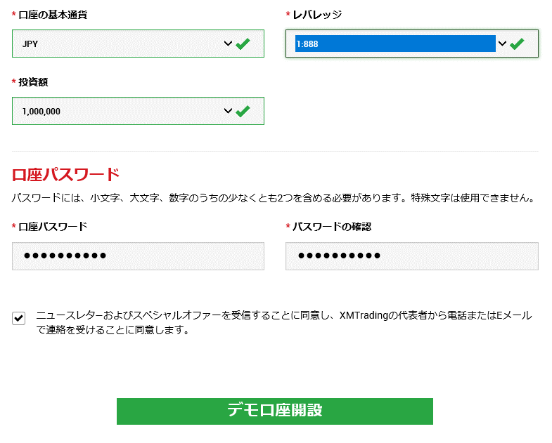 2. デモ口座の必要事項を入力しましょう。ここで、口座の基本通貨はJPYに設定します。